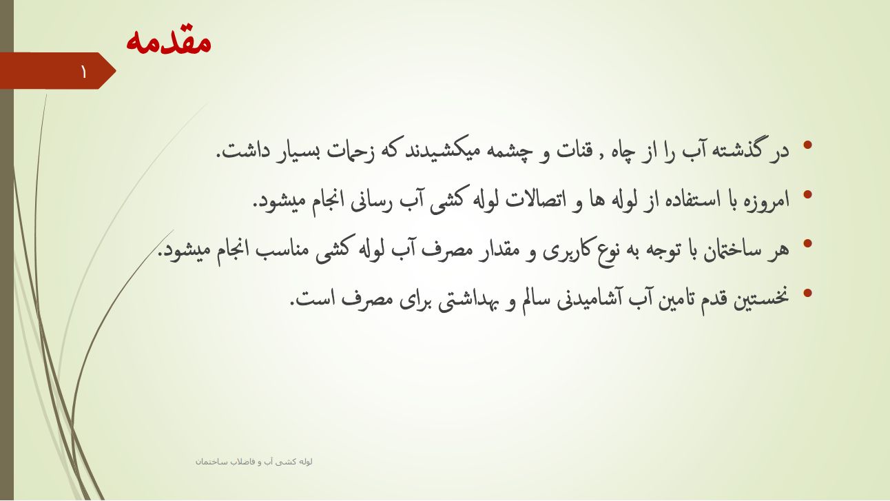 پاورپوینت سیستم لوله کشی آب سرد و گرم و فاضلاب ساختمان