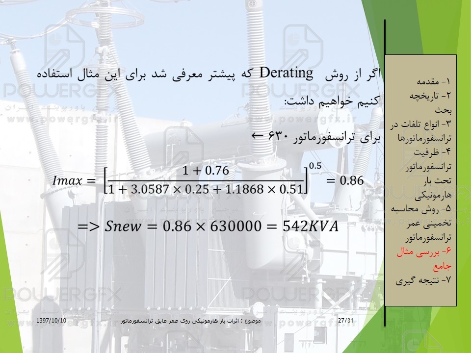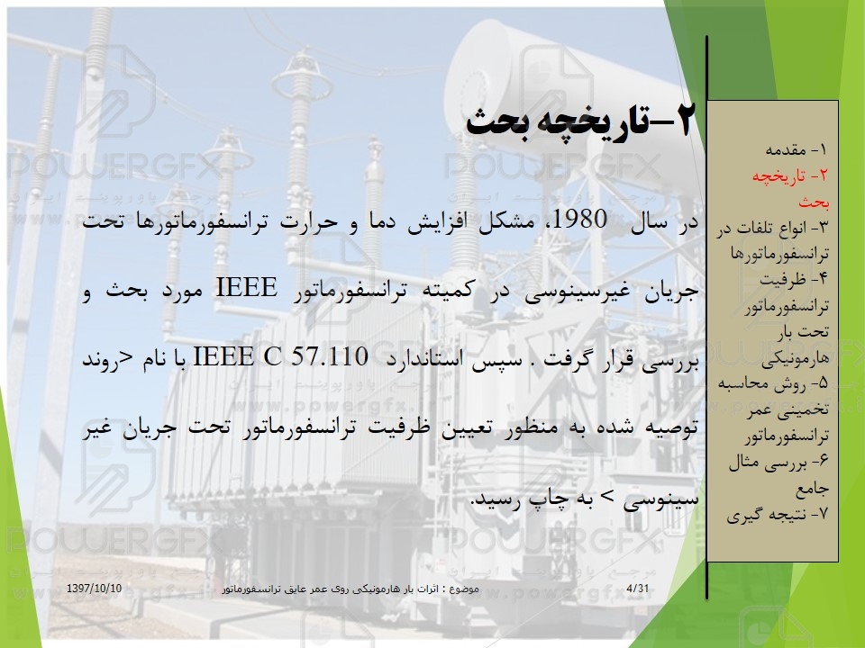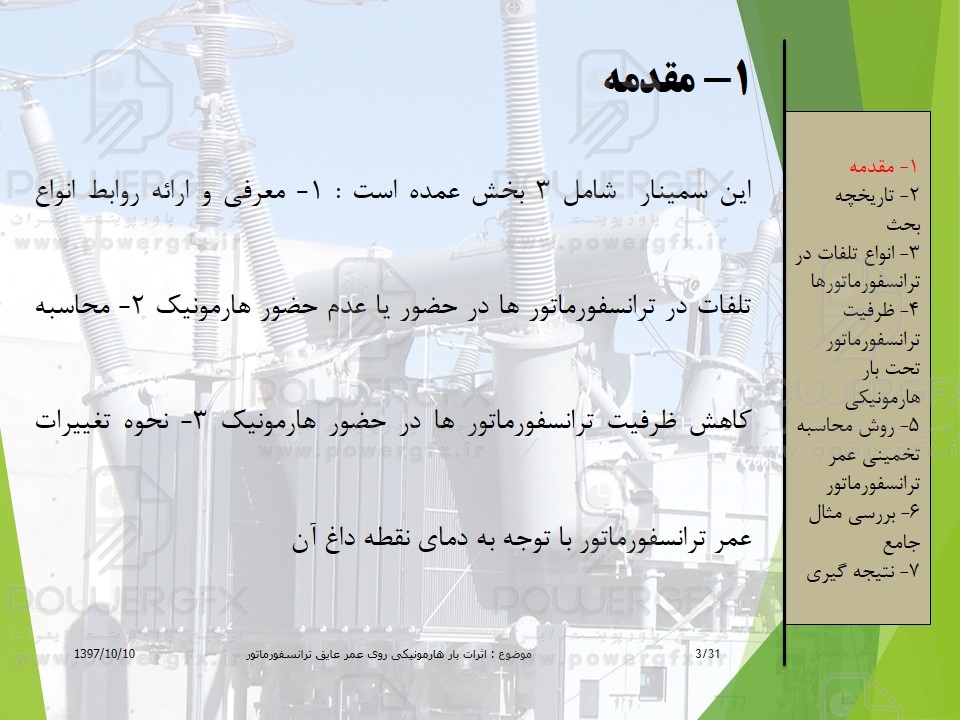 پاورپوینت اثرات بار هارمونیکی روی ظرفیت و عمر عایق ترانسفورماتور