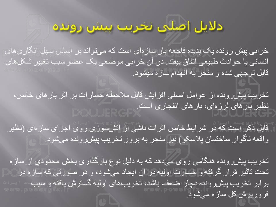 در طی چند دهه اخیر موارد مهمی از وقوع خرابی در سازه ها را می توان یافت که منجر به خسارات اقتصادی سنگین و ازدست رفتن جان انسان ها گردیده است .