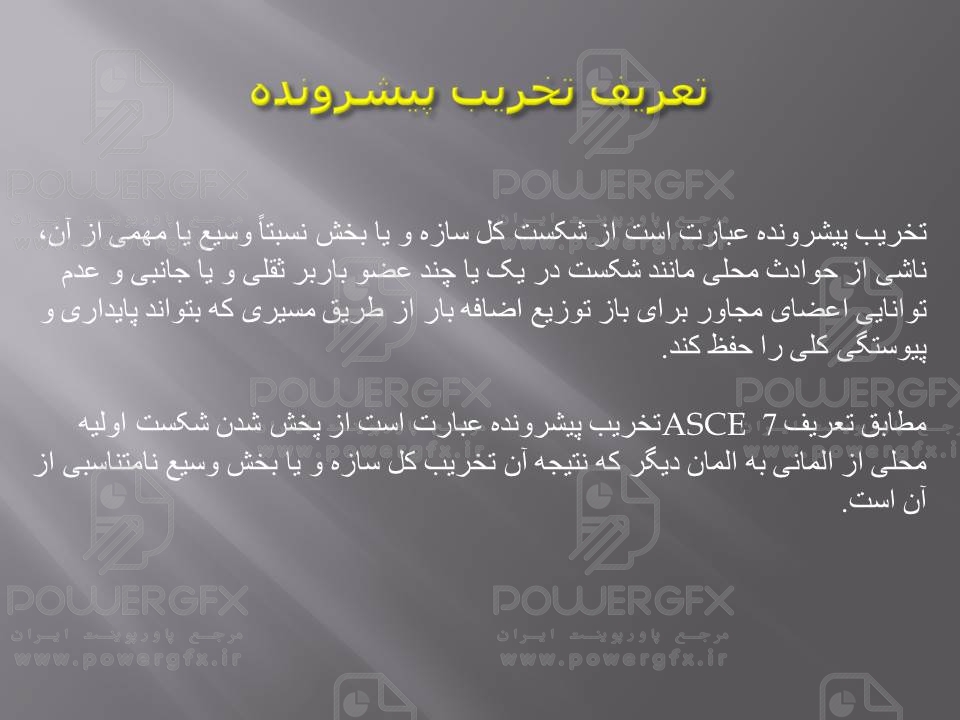 انجمن مهندسی عمران آمریکا ASCE خرابی پیش رونده را اینگونه تعریف کرده است: