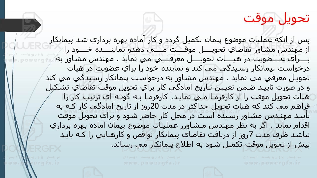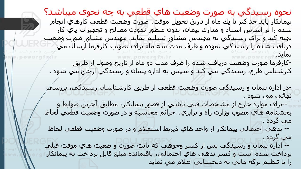فایل پاورپوینت ارکان پروژه و شرایط عمومی پیمان(20 اسلاید)