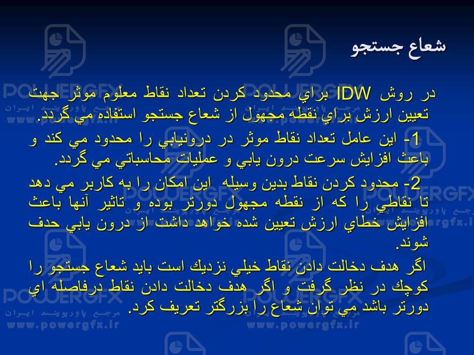 دادن ارزش به نقاط فاقد اطلاعات(نقاط مجهول) بر اساس اطلاعات موجود(نقاط معلوم) را درون يابي گويند.